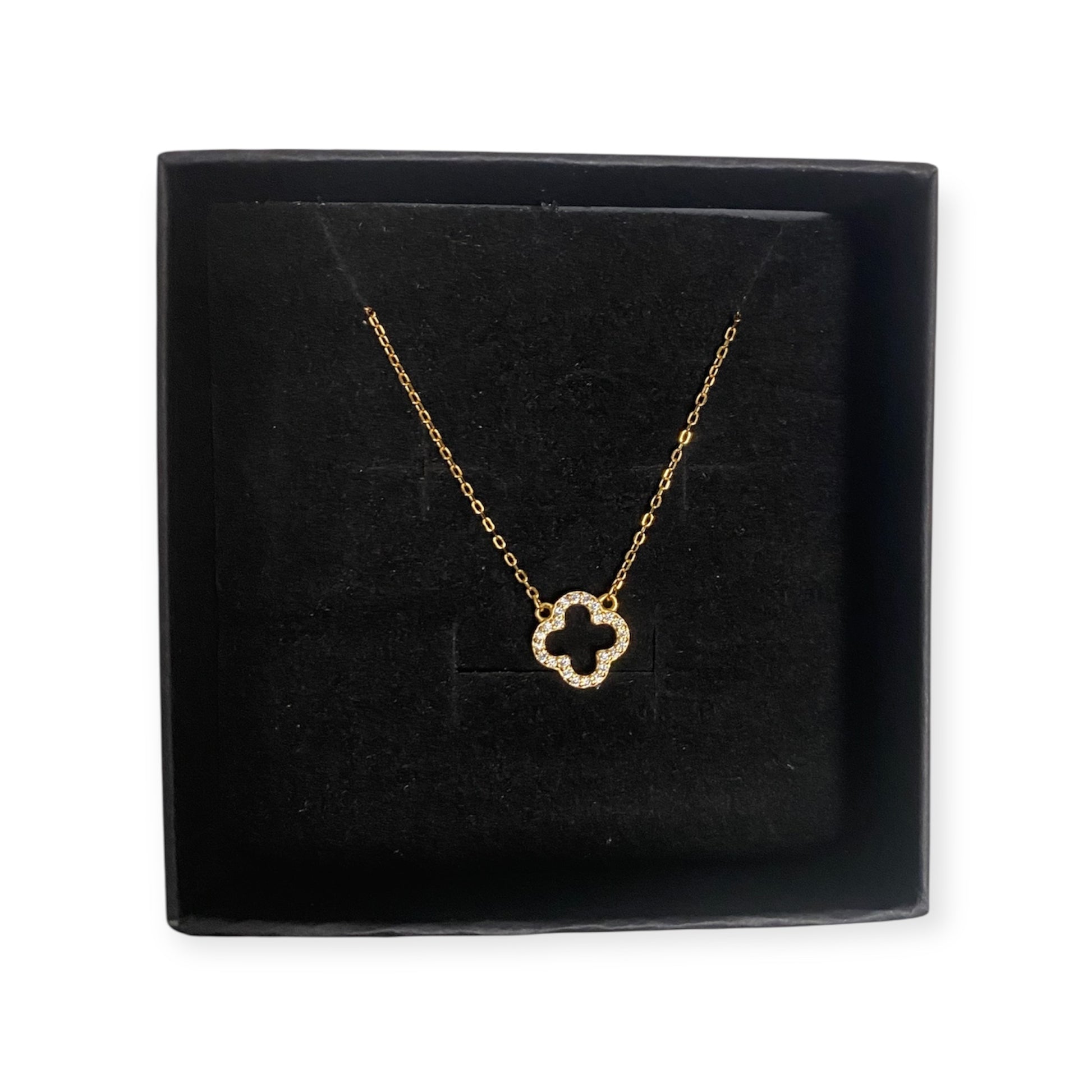 MOTHER OF PEARLS CLOVER NECKLACE - 18K GOLD PLATED CUBIC ZIRCONIA