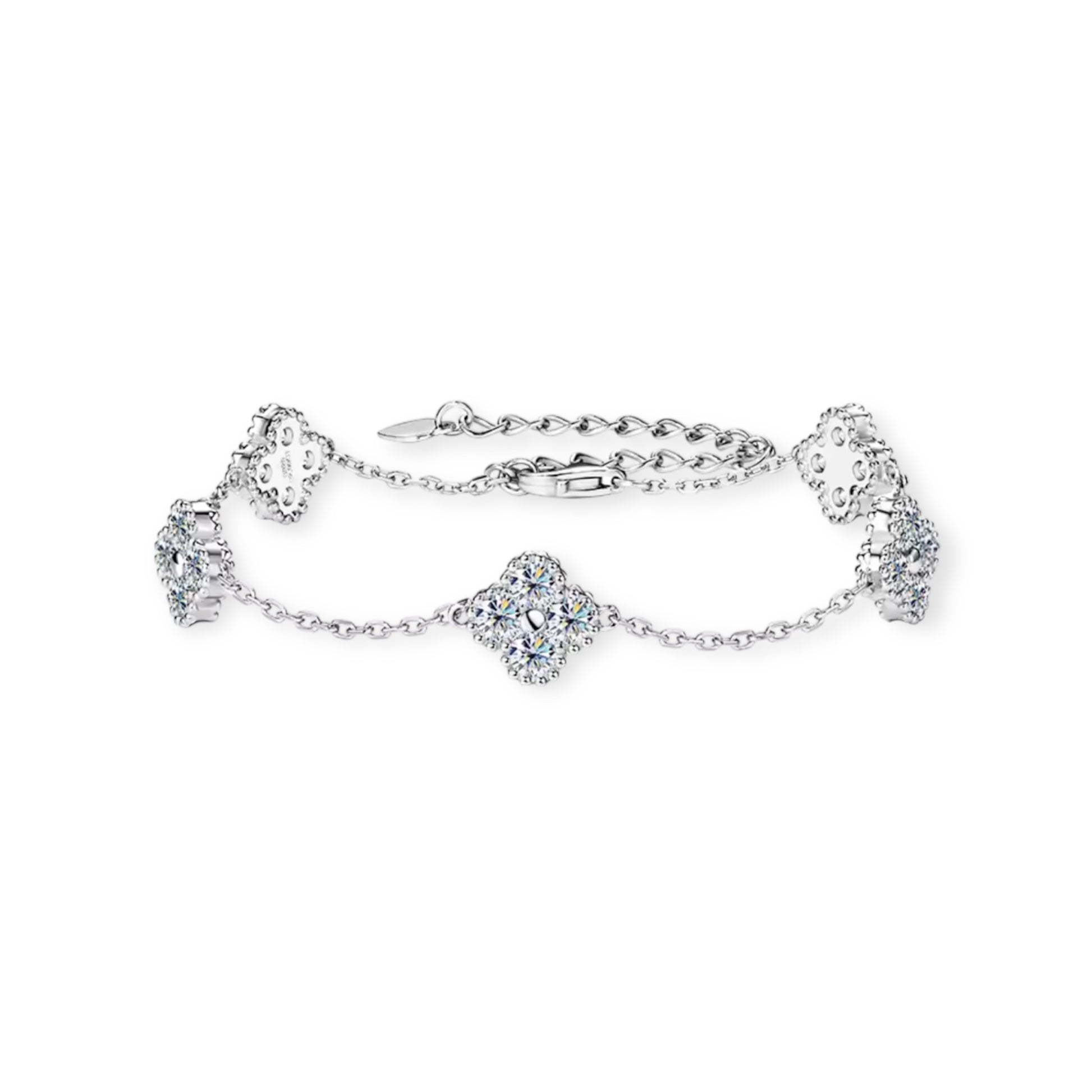 Featuring a graceful clover-inspired design with sparkling accents, each dangling element catches the light beautifully, creating subtle movement and radiant shimmer.