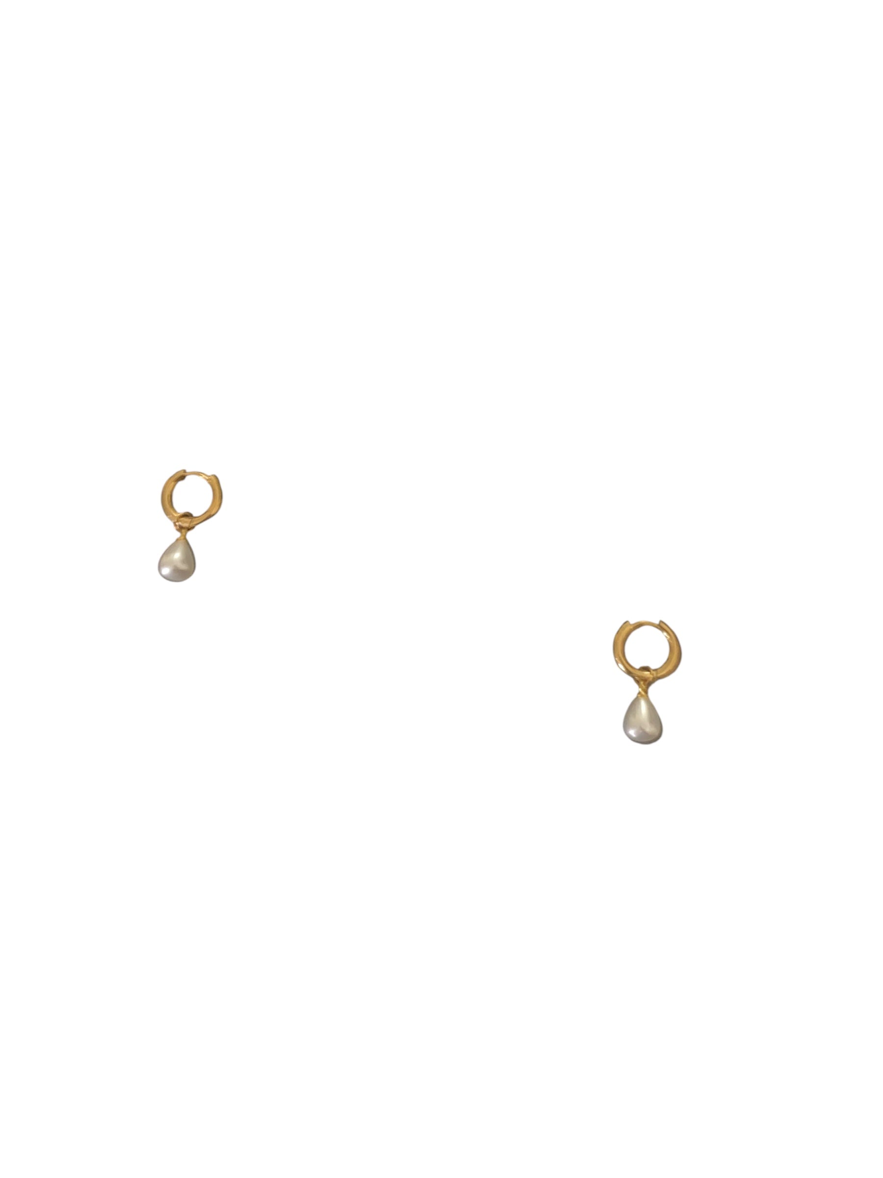 POLLIE PEARL HOOP EARRINGS 18K GOLD PLATED