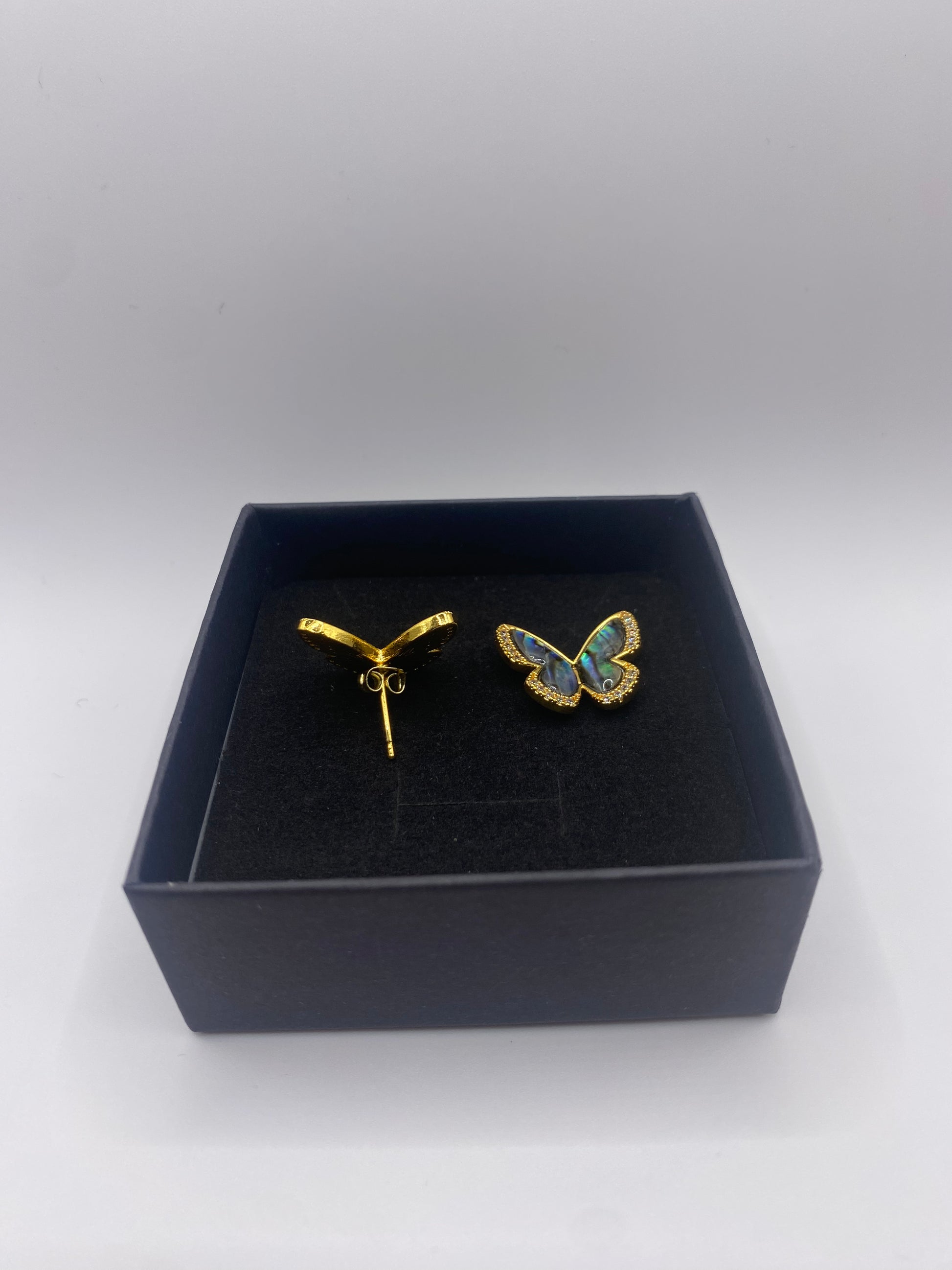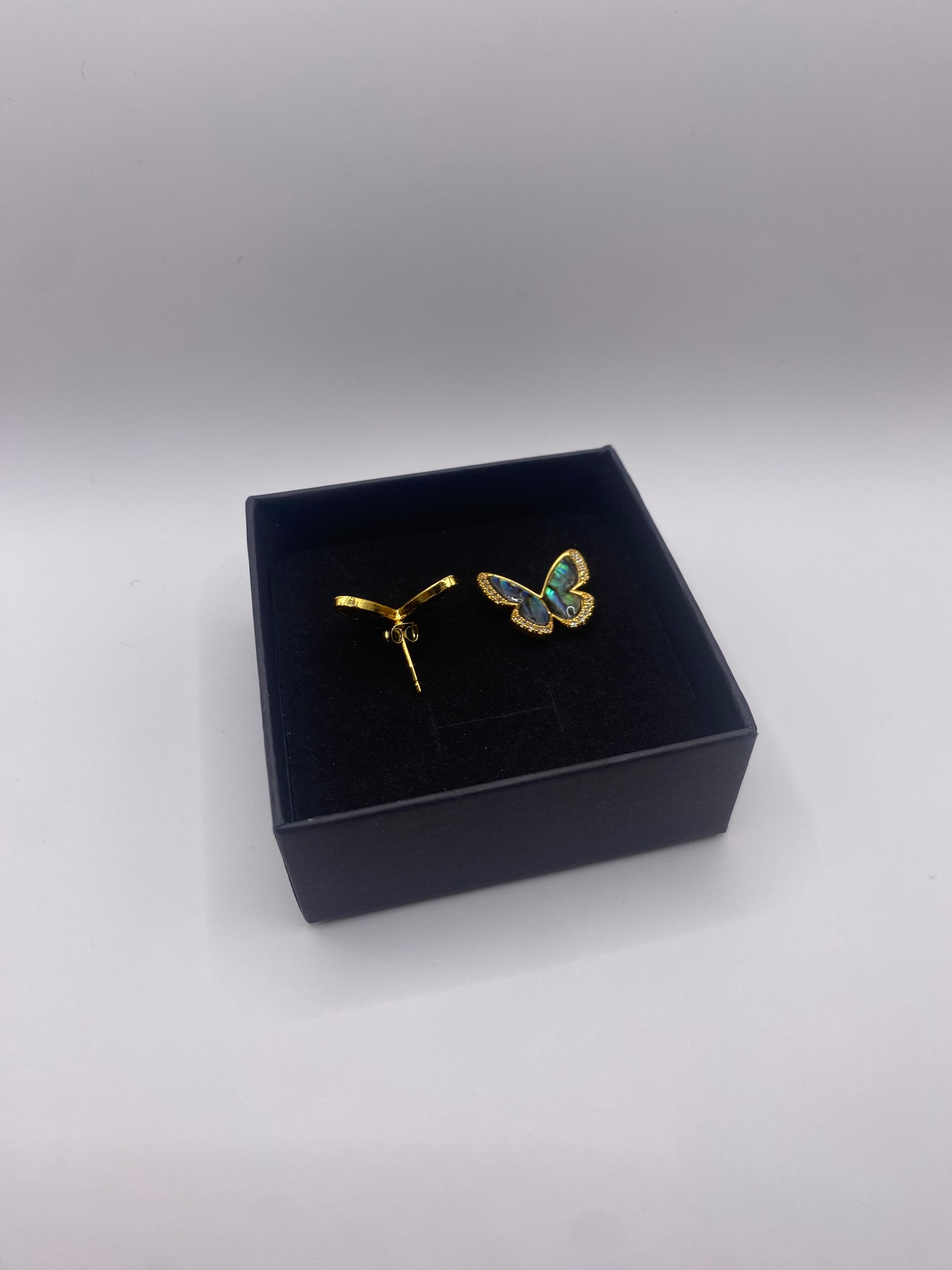 Details for our Vibrant Aotearoa Pāua Earrings Butterfly Design Diamond Cubic Zirconia 18K Gold Plated